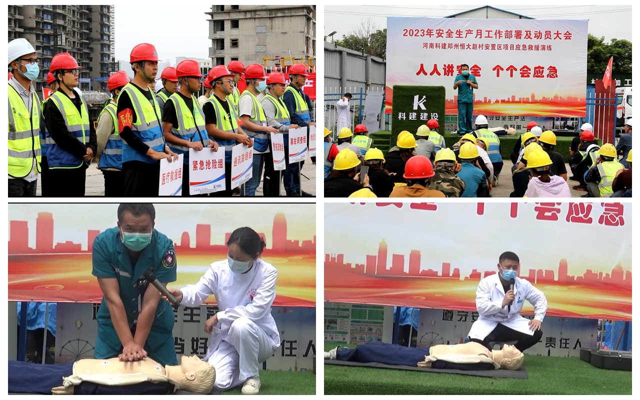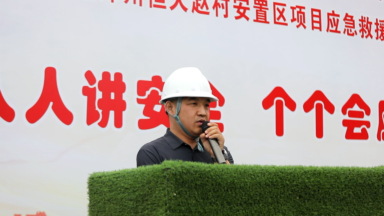 2023年5月30日上午10:00,以“人人講安全,個(gè)個(gè)會(huì)應(yīng)急”為主題的2023年“安全生產(chǎn)月”動(dòng)員大會(huì)暨高處作業(yè)專項(xiàng)應(yīng)急演練活動(dòng)在恒大趙村安置區(qū)項(xiàng)目召開,建設(shè)單位工程部經(jīng)理鄭志成、萬安工程咨詢有限公司監(jiān)理代表、公司董事兼副總經(jīng)理馬西鋒、公司副總經(jīng)理齊含釗、公司副總經(jīng)理孫全明、恒大趙村安置區(qū)項(xiàng)目經(jīng)理史偉、公司工程部、技術(shù)部及公司所屬各項(xiàng)目生產(chǎn)經(jīng)理、技術(shù)負(fù)責(zé)人、安全主管,恒大趙村安置區(qū)施工現(xiàn)場(chǎng)作業(yè)人員共計(jì)200余人參加,姬濤主持活動(dòng)。